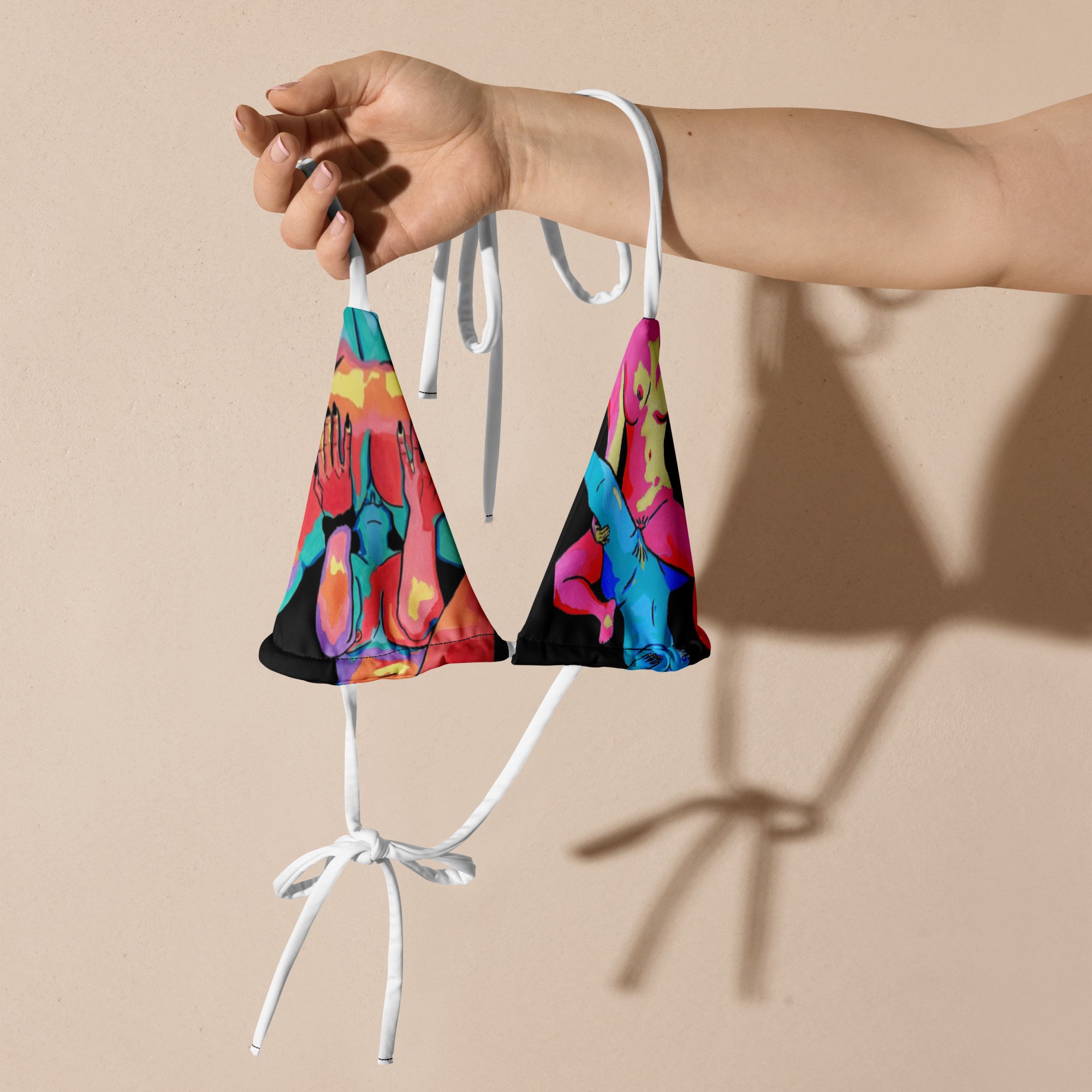 Disclaimer: To make your All-Over Print Recycled String Bikini Top last longer, thoroughly rinse it off after each use and get rid of any chlorine/salt residue.